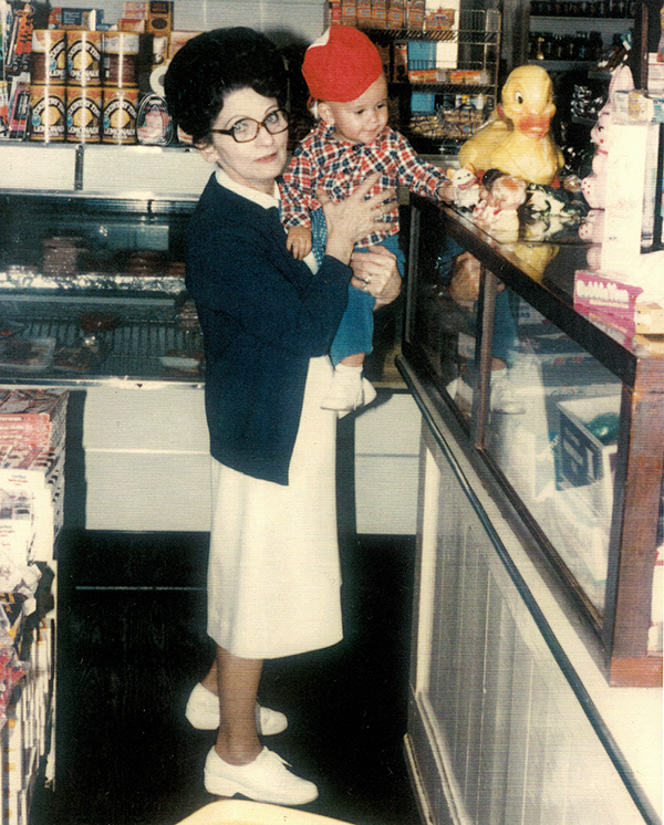Pauline Odem’s store was a fixture in East Bend for decades! The store stood where today the town park is located. Below Pauline with a young customer.